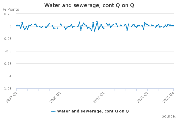 Download this time seriesWater and sewerage, cont Q on Q