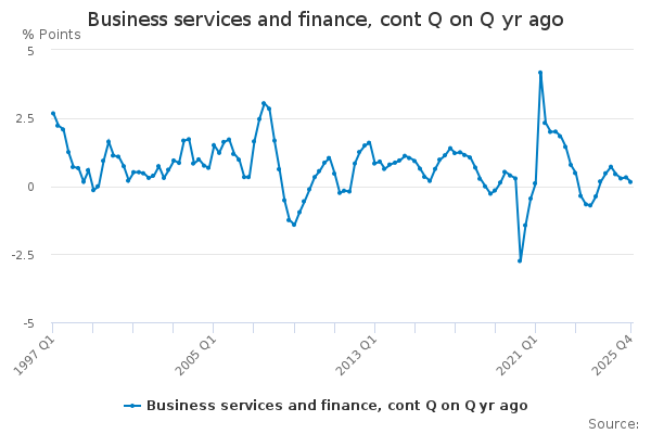 Download this time seriesBusiness services and finance, cont Q on Q yr ago