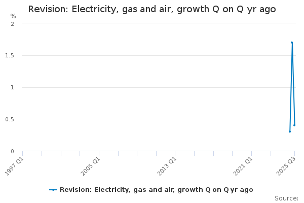 Download this time seriesRevision: Electricity, gas and air, growth Q on Q yr ago