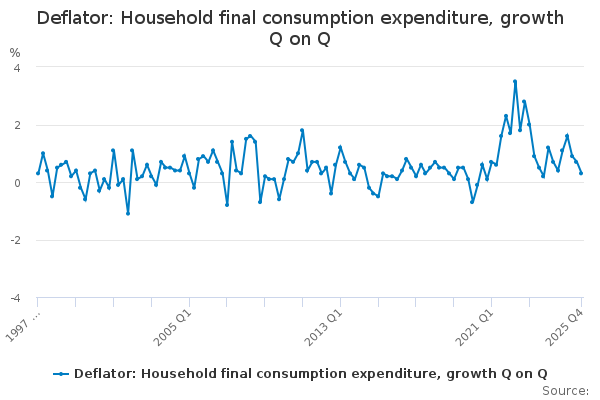 Download this time seriesDeflator: Household final consumption expenditure, growth Q on Q
