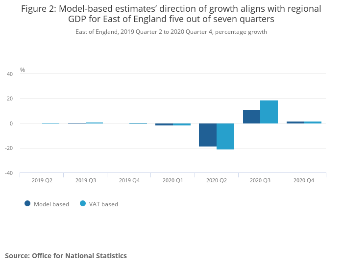 Figure 2: Model-based estimates’ direction of growth aligns with regional GDP for East of England five out of seven quarters