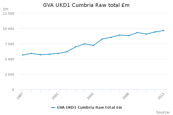Download this time seriesGVA UKD1 Cumbria Raw total £m