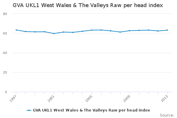 Download this time seriesGVA UKL1 West Wales & The Valleys Raw per head index