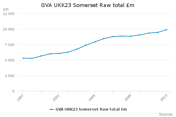 Download this time seriesGVA UKK23 Somerset Raw total £m