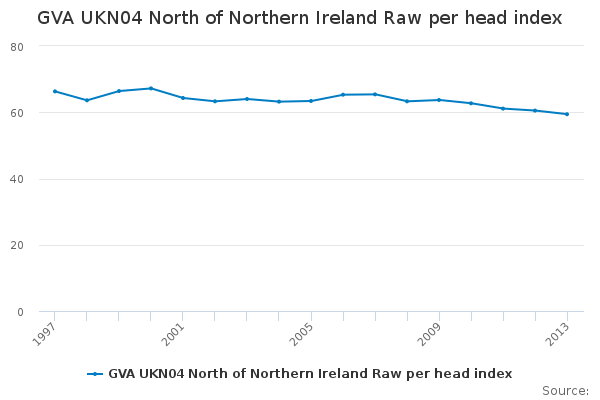 Download this time seriesGVA UKN04 North of Northern Ireland Raw per head index