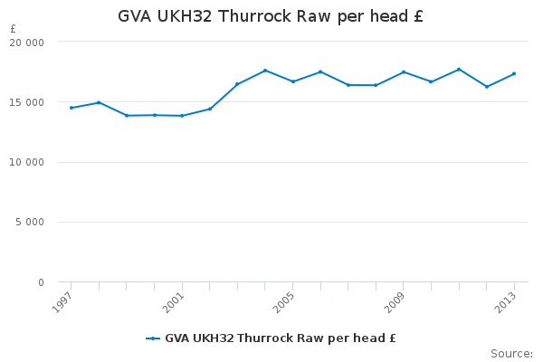 Download this time seriesGVA UKH32 Thurrock Raw per head £