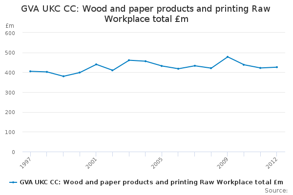 Download this time seriesGVA UKC CC: Wood and paper products and printing Raw Workplace total £m