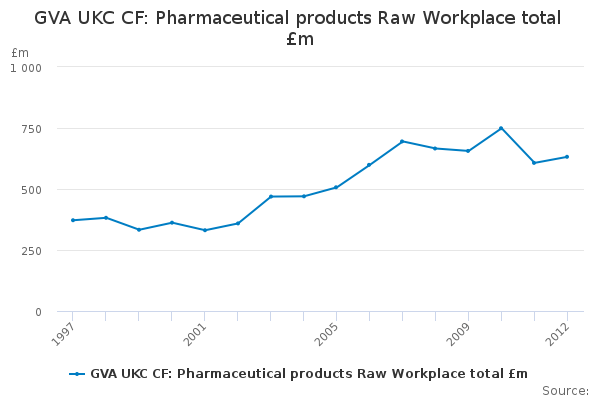 Download this time seriesGVA UKC CF: Pharmaceutical products Raw Workplace total £m
