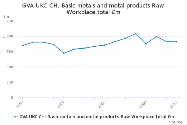 Download this time seriesGVA UKC CH: Basic metals and metal products Raw Workplace total £m