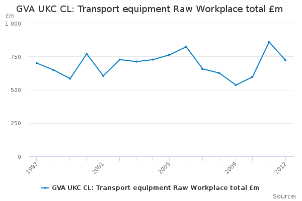 Download this time seriesGVA UKC CL: Transport equipment Raw Workplace total £m