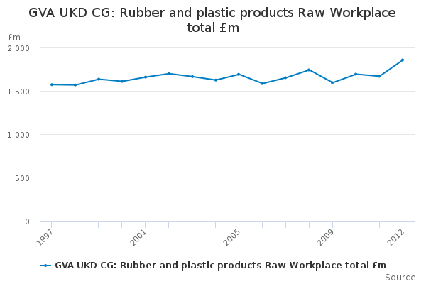 Download this time seriesGVA UKD CG: Rubber and plastic products Raw Workplace total £m