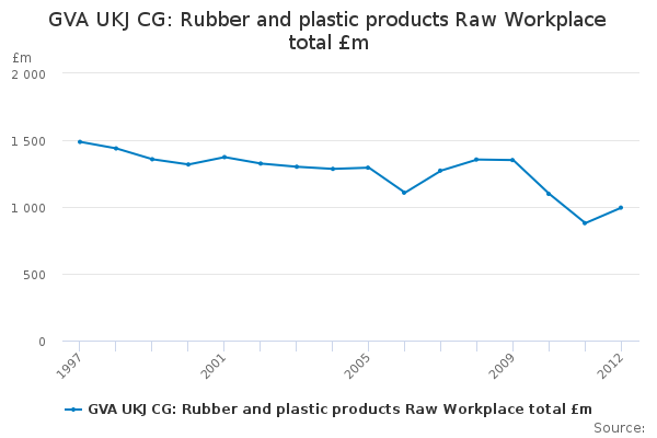 Download this time seriesGVA UKJ CG: Rubber and plastic products Raw Workplace total £m