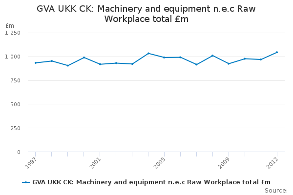 Download this time seriesGVA UKK CK: Machinery and equipment n.e.c Raw Workplace total £m