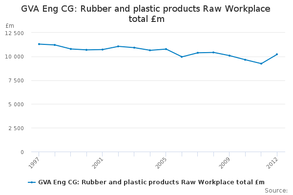 Download this time seriesGVA Eng CG: Rubber and plastic products Raw Workplace total £m