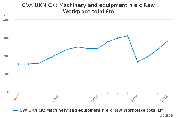 Download this time seriesGVA UKN CK: Machinery and equipment n.e.c Raw Workplace total £m