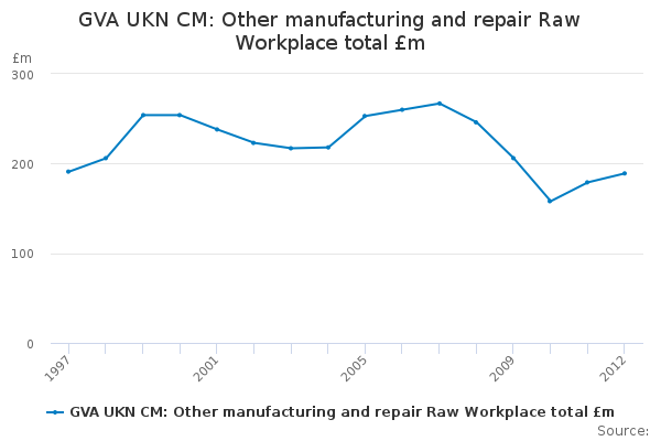 Download this time seriesGVA UKN CM: Other manufacturing and repair Raw Workplace total £m