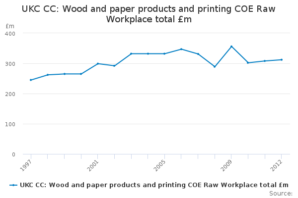 Download this time seriesUKC CC: Wood and paper products and printing COE Raw Workplace total £m