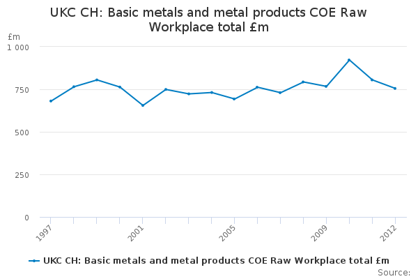 Download this time seriesUKC CH: Basic metals and metal products COE Raw Workplace total £m