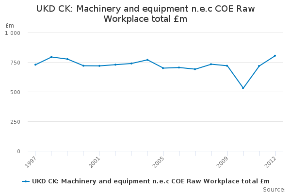 Download this time seriesUKD CK: Machinery and equipment n.e.c COE Raw Workplace total £m