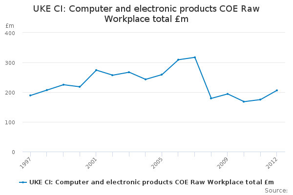 Download this time seriesUKE CI: Computer and electronic products COE Raw Workplace total £m