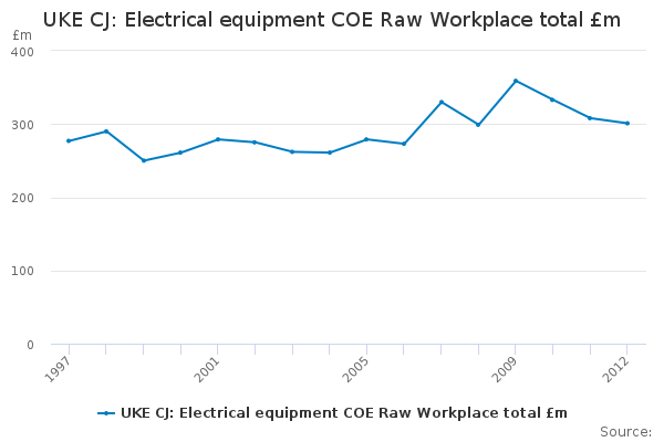 Download this time seriesUKE CJ: Electrical equipment COE Raw Workplace total £m