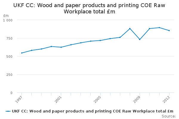 Download this time seriesUKF CC: Wood and paper products and printing COE Raw Workplace total £m