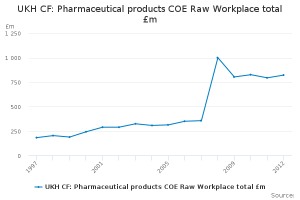 Download this time seriesUKH CF: Pharmaceutical products COE Raw Workplace total £m