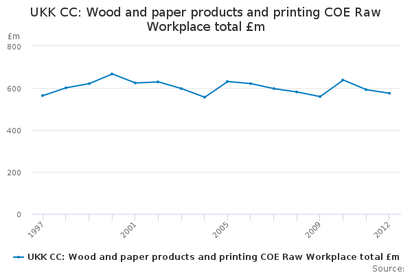 Download this time seriesUKK CC: Wood and paper products and printing COE Raw Workplace total £m