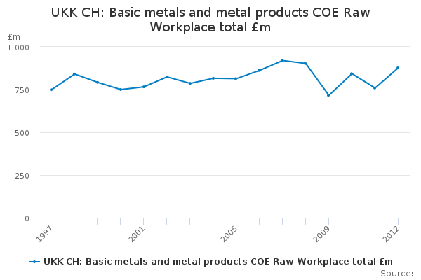 Download this time seriesUKK CH: Basic metals and metal products COE Raw Workplace total £m