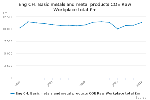 Download this time seriesEng CH: Basic metals and metal products COE Raw Workplace total £m