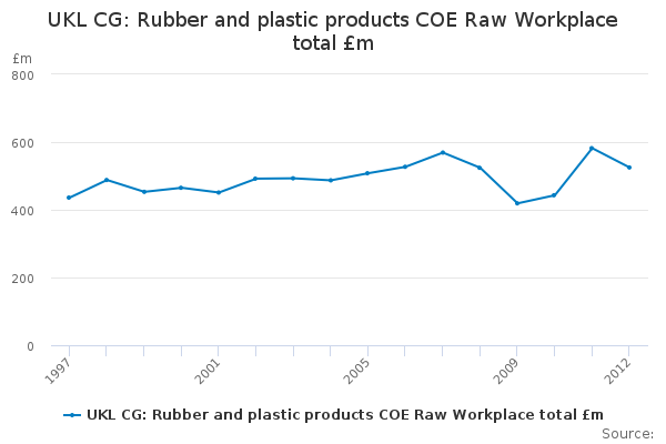 Download this time seriesUKL CG: Rubber and plastic products COE Raw Workplace total £m