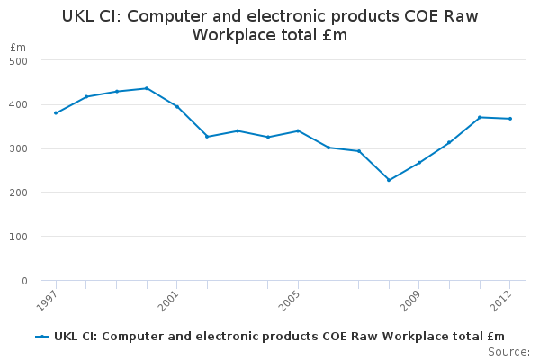 Download this time seriesUKL CI: Computer and electronic products COE Raw Workplace total £m