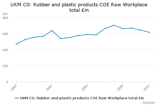 Download this time seriesUKM CG: Rubber and plastic products COE Raw Workplace total £m