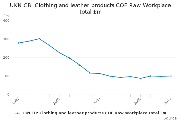 Download this time seriesUKN CB: Clothing and leather products COE Raw Workplace total £m