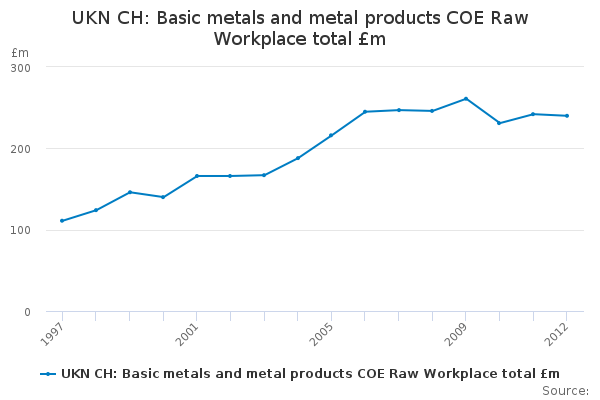 Download this time seriesUKN CH: Basic metals and metal products COE Raw Workplace total £m