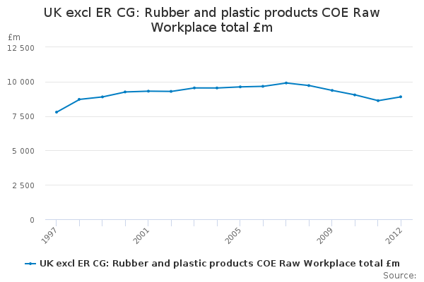 Download this time seriesUK excl ER CG: Rubber and plastic products COE Raw Workplace total £m