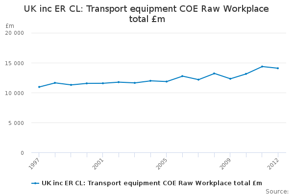Download this time seriesUK inc ER CL: Transport equipment COE Raw Workplace total £m