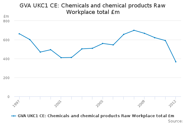 Download this time seriesGVA UKC1 CE: Chemicals and chemical products Raw Workplace total £m