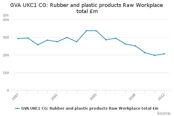 Download this time seriesGVA UKC1 CG: Rubber and plastic products Raw Workplace total £m