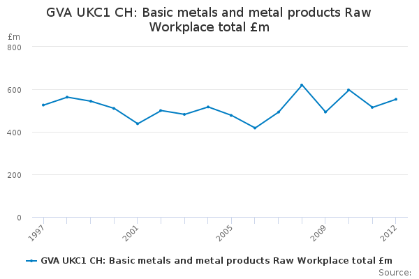 Download this time seriesGVA UKC1 CH: Basic metals and metal products Raw Workplace total £m