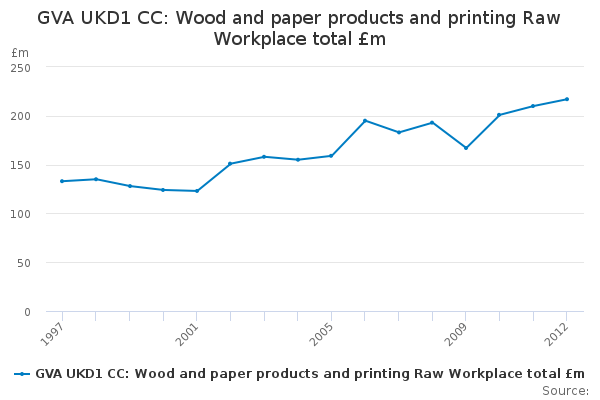 Download this time seriesGVA UKD1 CC: Wood and paper products and printing Raw Workplace total £m