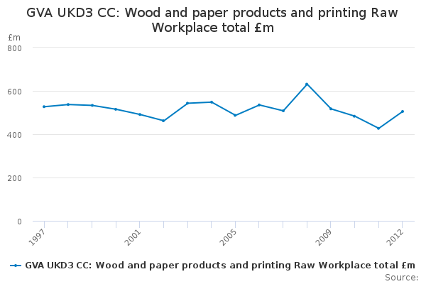 Download this time seriesGVA UKD3 CC: Wood and paper products and printing Raw Workplace total £m