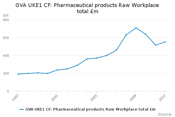 Download this time seriesGVA UKE1 CF: Pharmaceutical products Raw Workplace total £m
