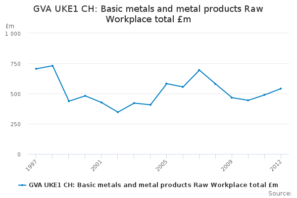 Download this time seriesGVA UKE1 CH: Basic metals and metal products Raw Workplace total £m