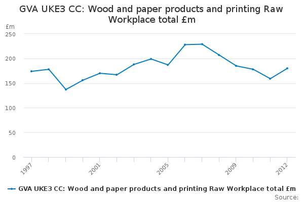 Download this time seriesGVA UKE3 CC: Wood and paper products and printing Raw Workplace total £m