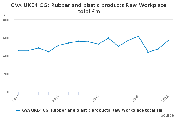 Download this time seriesGVA UKE4 CG: Rubber and plastic products Raw Workplace total £m