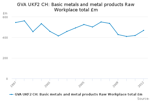 Download this time seriesGVA UKF2 CH: Basic metals and metal products Raw Workplace total £m