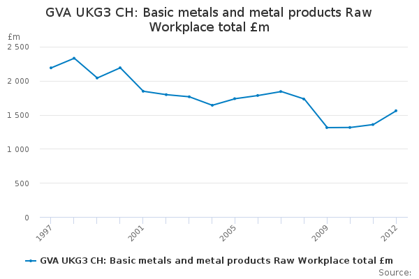 Download this time seriesGVA UKG3 CH: Basic metals and metal products Raw Workplace total £m