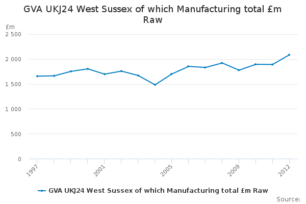 Download this time seriesGVA UKJ24 West Sussex of which Manufacturing total £m Raw