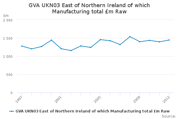 Download this time seriesGVA UKN03 East of Northern Ireland of which Manufacturing total £m Raw